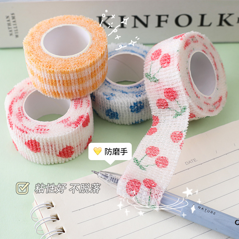 指の包帯を保護します。学生は字を書いて、指のカバーを保護します。