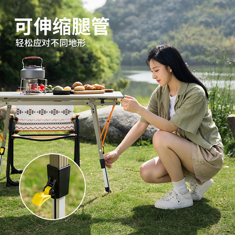 私は屋外折り畳みテーブルの卵巻きテーブルのキャンプテーブルの携帯型アルミ合金のピクニックキャンプのテーブルと椅子の装備用品を飛んでいます。