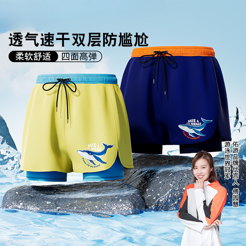 子供の水泳のズボンの男の子の専門の速乾の水着の中で大きい子供の二重は気まずい思いをする水着の男の子の装備のスーツの夏を防ぎます。