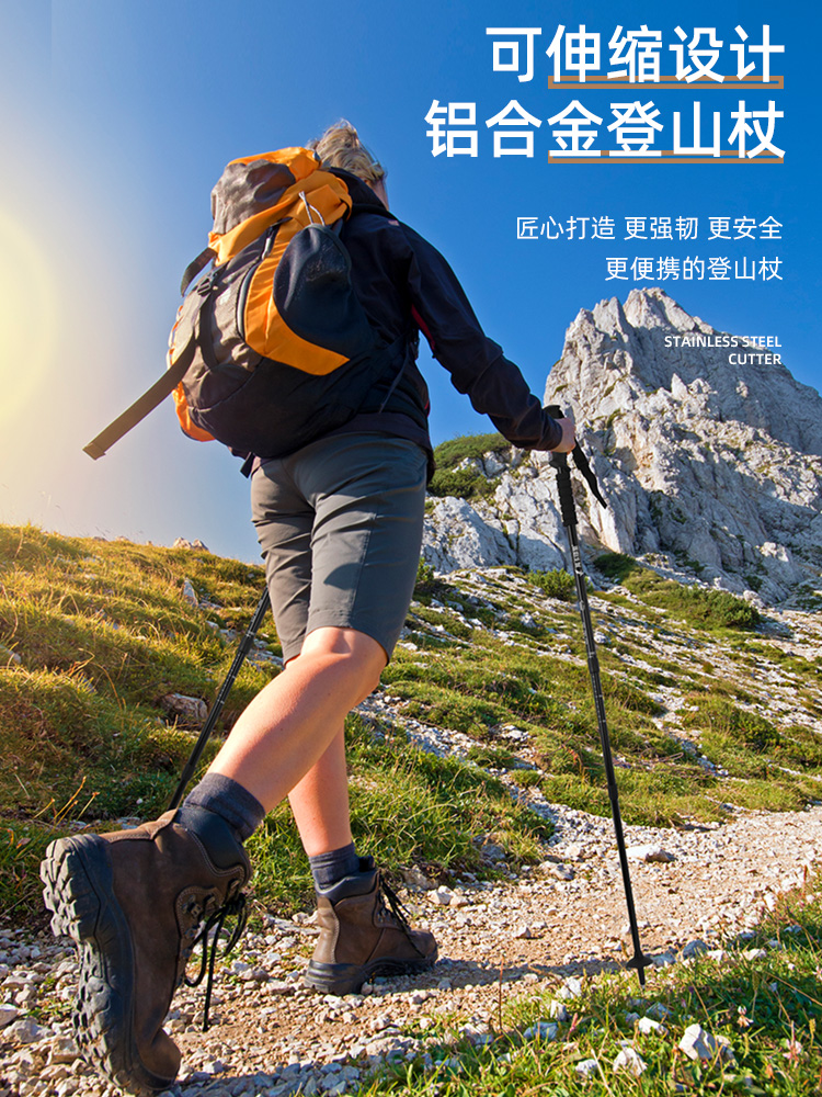 アウトドア登山杖ステッキ炭素超軽量伸縮折り畳みスキー滑り止め杖多機能登山徒歩装備