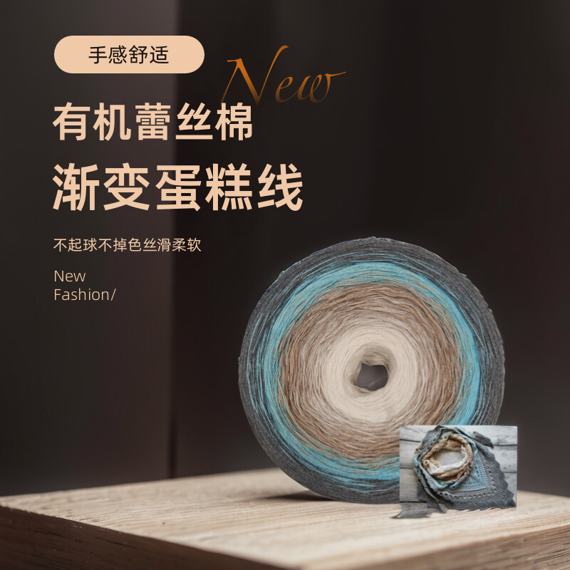 オーガニックレースコットン手巻き混合ケーキ糸グラデーションカラーロングセクション染め手織りショールブランケットかぎ針編みウール