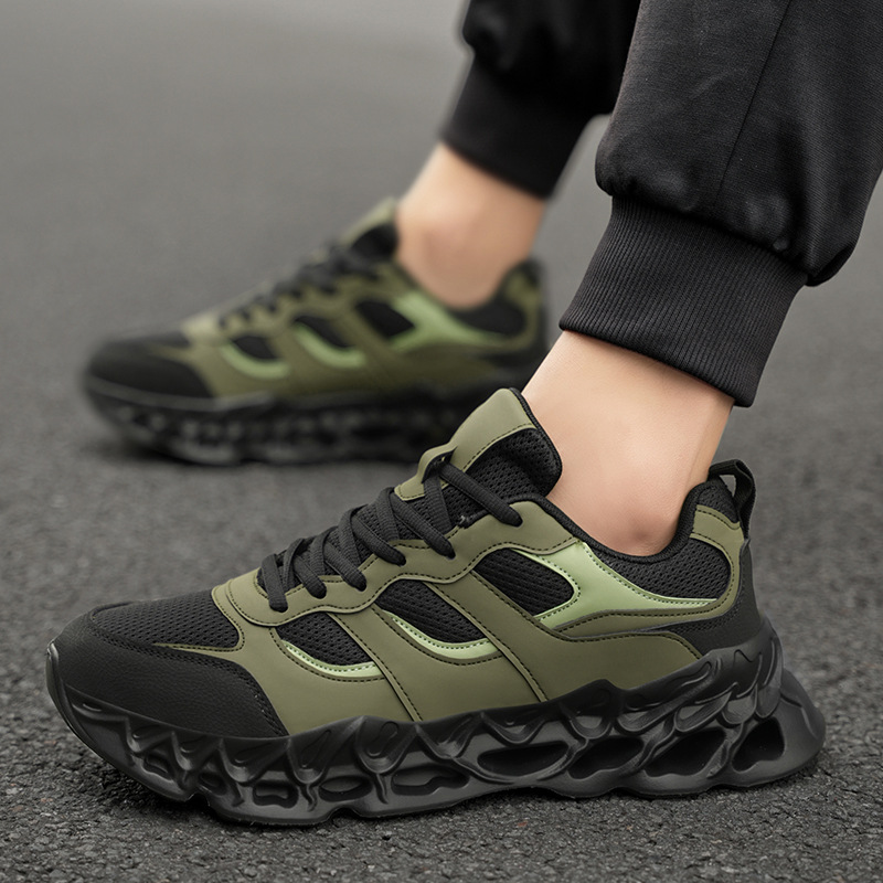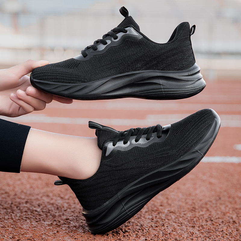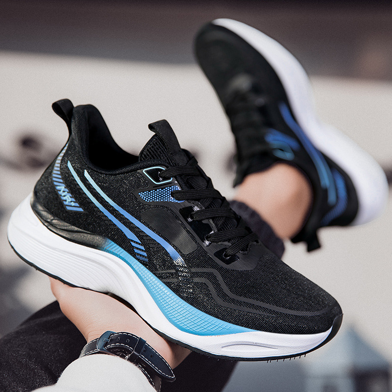 カジュアルな男性の靴の運動靴の男性のタイプの2025新型の春の通気性は靴の黒色を走ります。