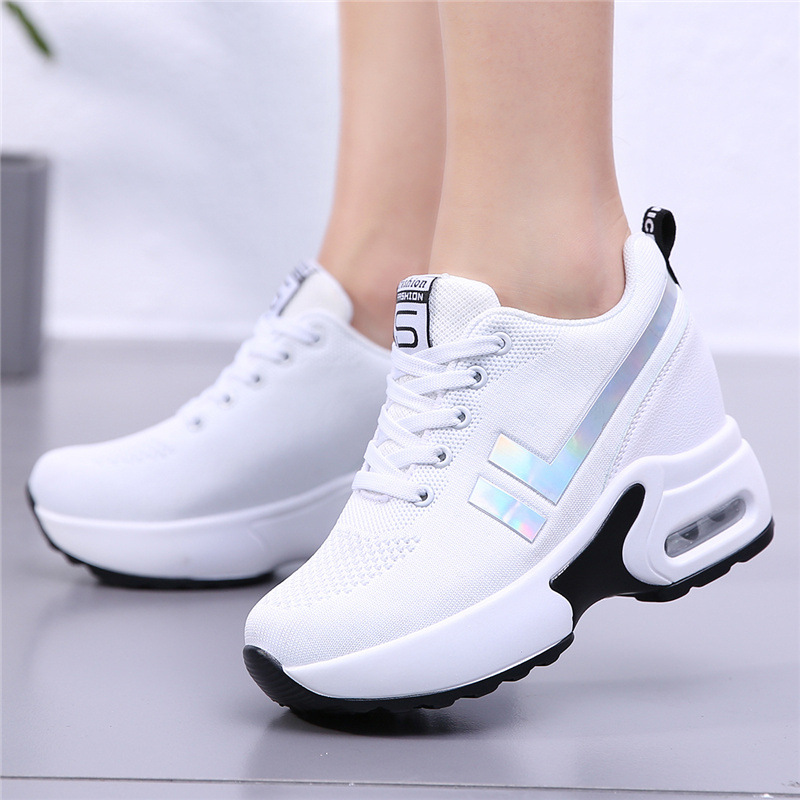 2025年新作、クロスボーダー貿易向け、身長アップ効果のあるレディースシューズ、白いスニーカー、通気性のあるメッシュ素材、スポーツ、レジャー、旅行に最適なアガムシューズ