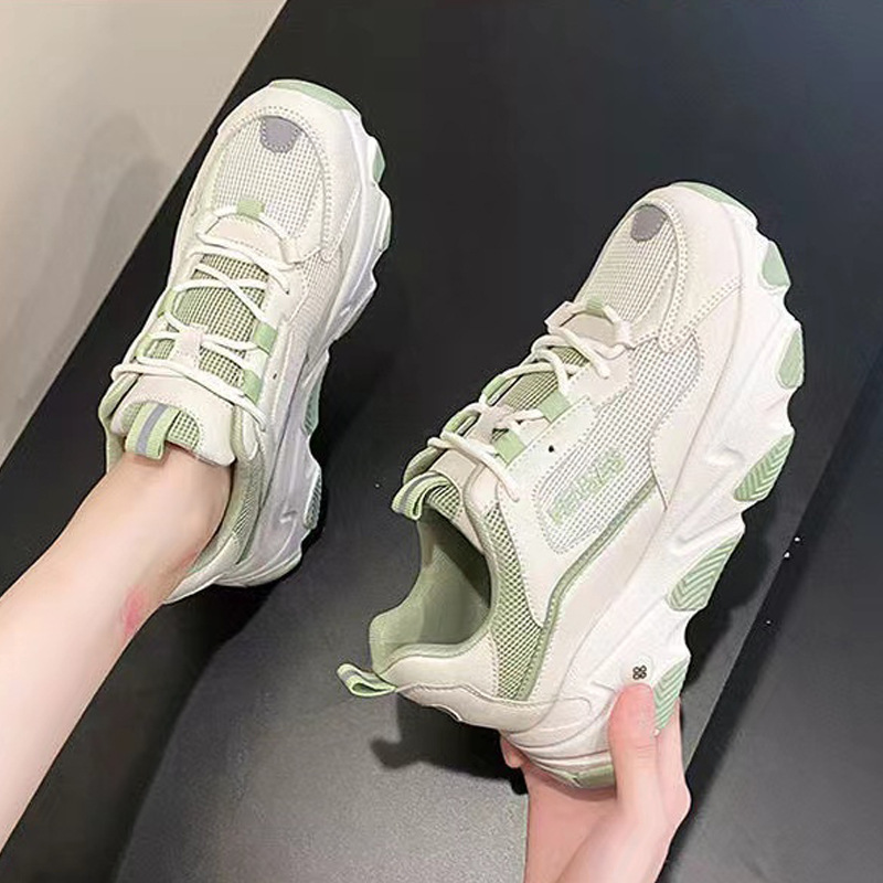 クロスボーダー2023年春に高くなった女性靴の柔らかい底の運動靴のネットの通気性のお父さんの靴の厚い底のカジュアルな女性靴の潮