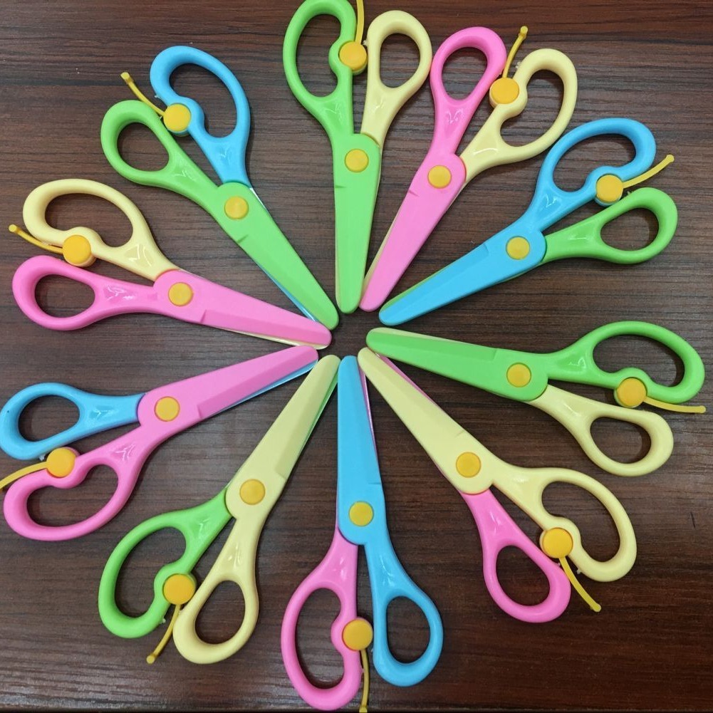 卸売りの学生は子供の切り紙の文房具の幼児のプラスチックの小さいはさみを切って安全で手の子供のはさみを傷つけません。