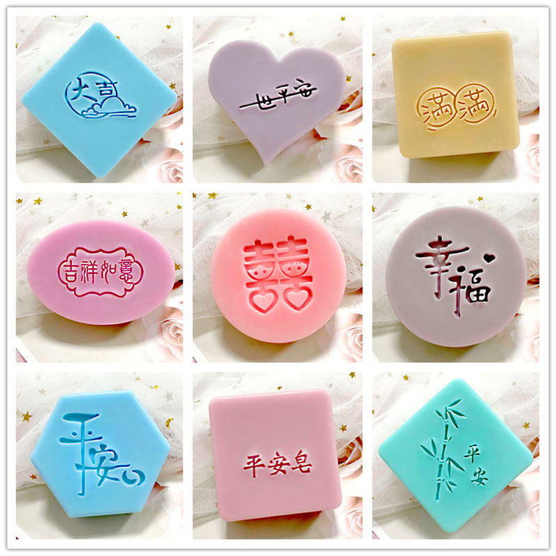 祝福語双喜平安幸福大吉中国語書体手作り石鹸印鑑透明アクリル樹脂石鹸章