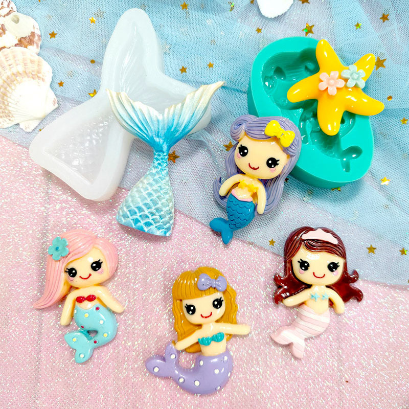 漫画の人魚のしっぽの人魚の海星は砂糖のケーキのチョコレートのビスケットの装飾のシリカゲルの鋳型をひっくり返してツールを焼きます。
