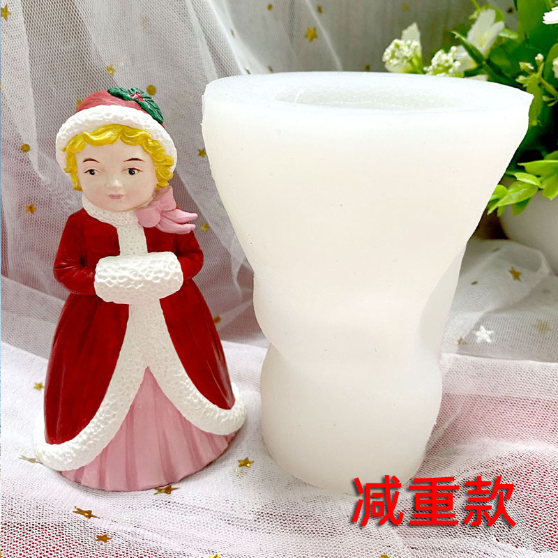 クリスマスのアイデアの女の子のろうそくのフランスのムースのチョコレートのシリコンの鋳型の石膏のアロマケーキの置物の模型