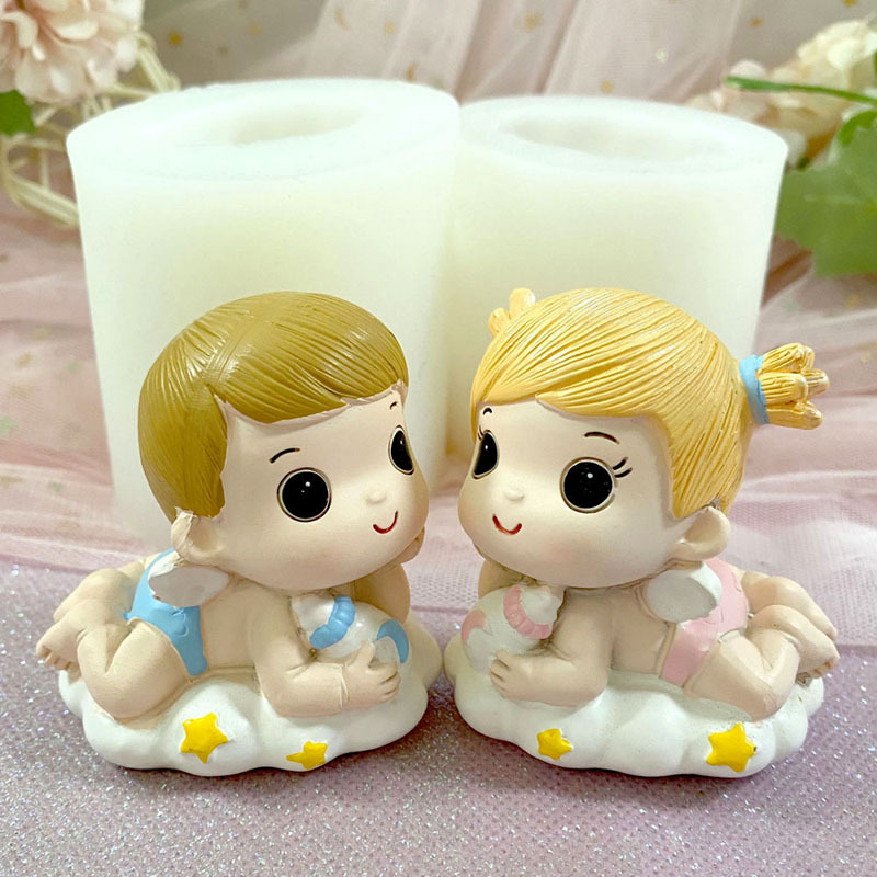 漫画の赤ちゃんの形のチョコレートのシリカゲルの鋳型の立体の人物の石膏の香薫のろうそくの滴のゴムの置物