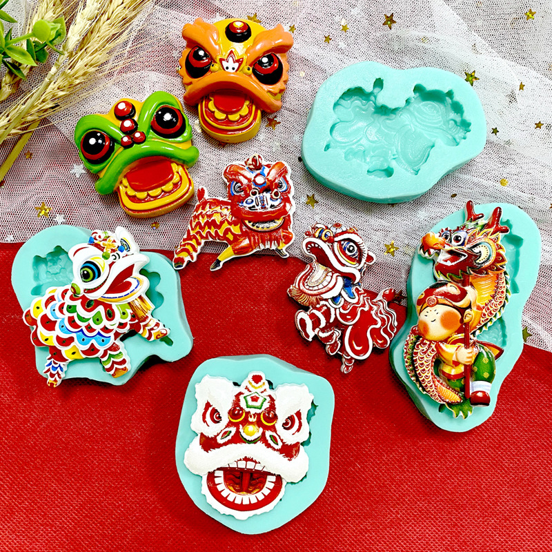 国風舞獅子舞龍獅子頭シリコン金型DIY手作り装飾冷蔵庫に拡香石膏香薫シリコン金型を貼る