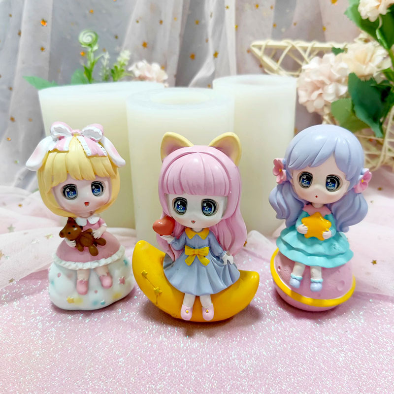 3d立体漫画アニメキャンドル女の子プリンセスシリコン金型手作りdiyアロマ石膏樹脂振り子金型