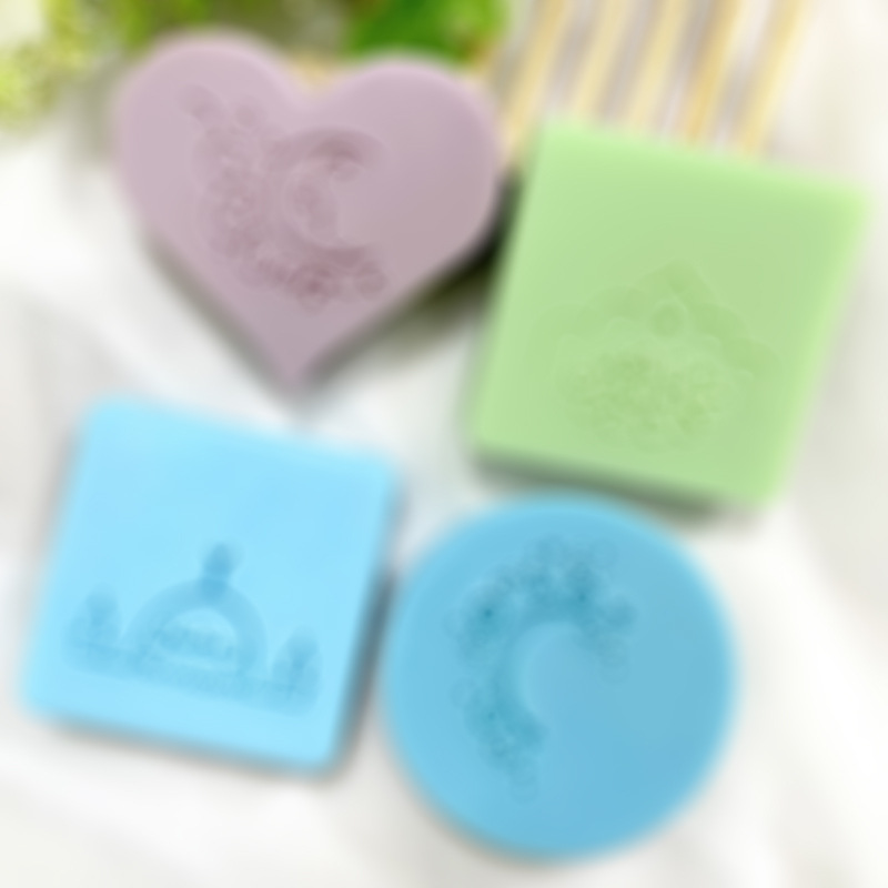 星の月のアルファベットの図案のアクリルの透明な印鑑の石鹸は取っ手の陶泥の手の石鹸の石鹸の章をつけます。