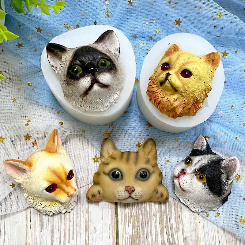 中国式のアニメ動物の猫の頭の形のチョコレートのシリカゲルの鋳型の手作りの風口は石膏の香薫の石けんの鋳型を掛けます。