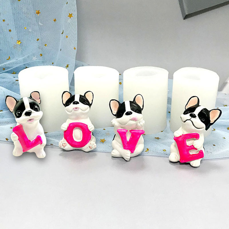 バレンタインデーの愛らしい子犬のLOVE型シリコンモールド、チョコレートケーキ3D立体漫画石膏樹脂置物型