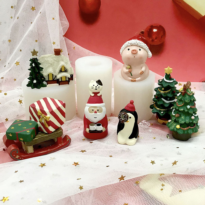 クリスマス老人ギフトボックスツリーそり子豚ペンギンハウスシリコーン金型チョコレートケーキベーカリー装飾