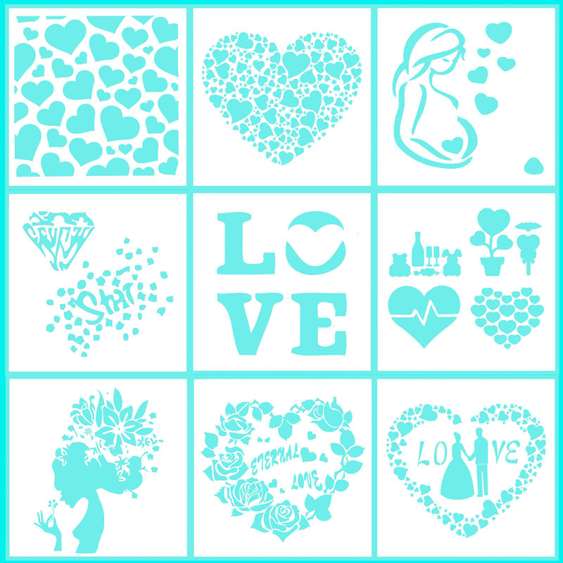 バレンタインデー愛母の日英語アルファベット絵画透かし彫りテンプレートツールムースケーキ砂糖ふるいスプレーモデル