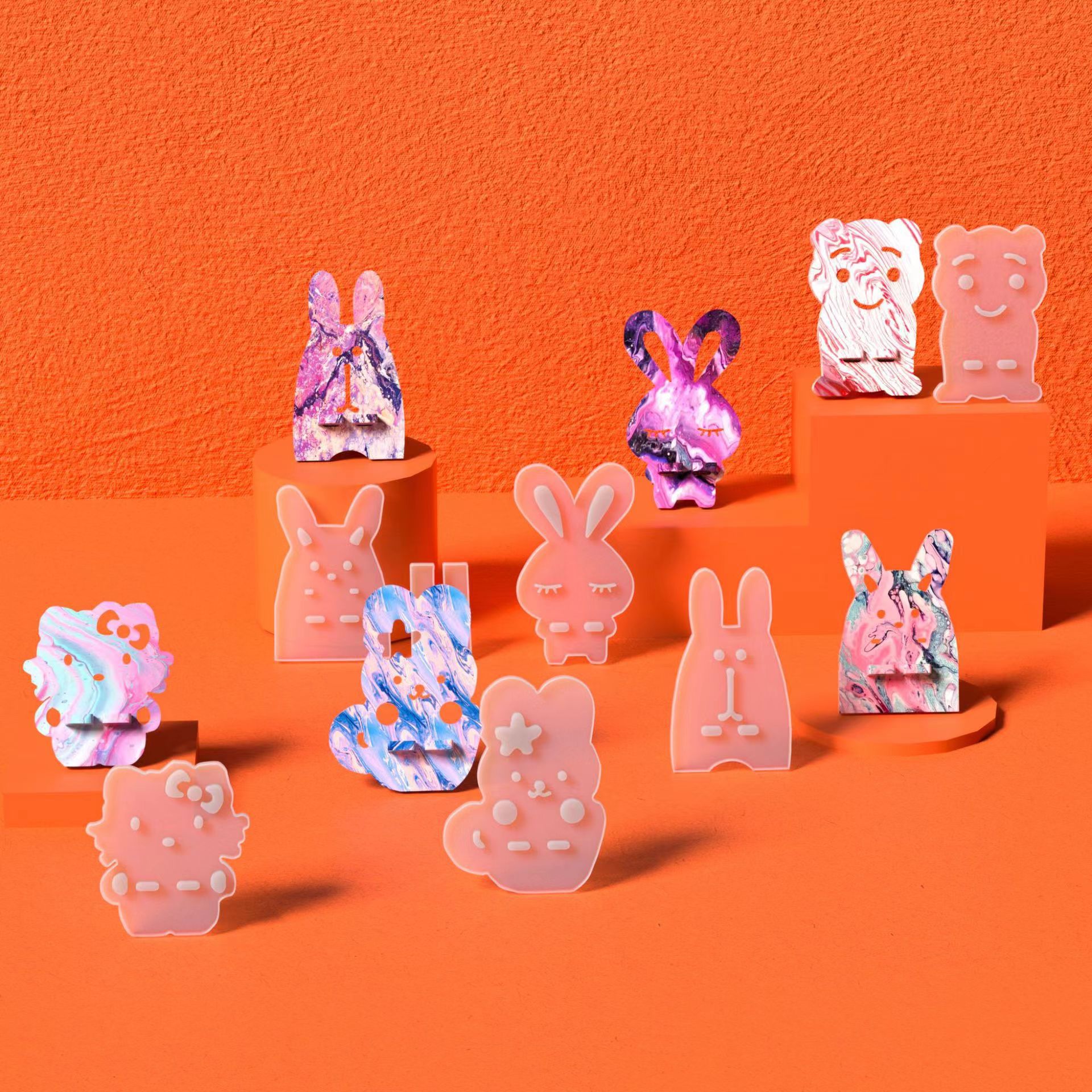 Diy熊の携帯電話のスタンドのシリカゲルのゴムの鋳型の漫画の長い耳のウサギの8項の高い鏡面のゴムの鋳型