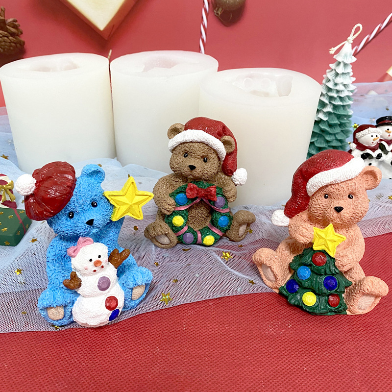 3d立体テディ熊シリコン金型樹脂石膏ろうそく置物クリスマス母子熊石鹸アニメ砥石