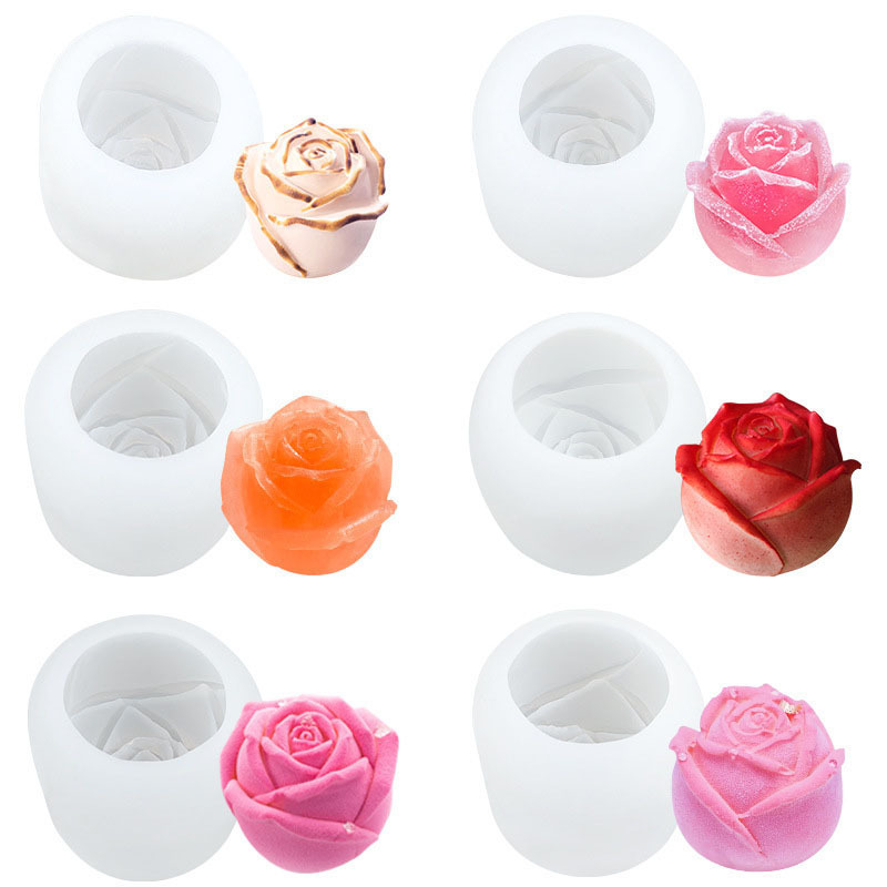 3dバラ形シリコン金型焙煎ムースケーキ食品級シリコン金型手作り石けんろうそく花形砥石