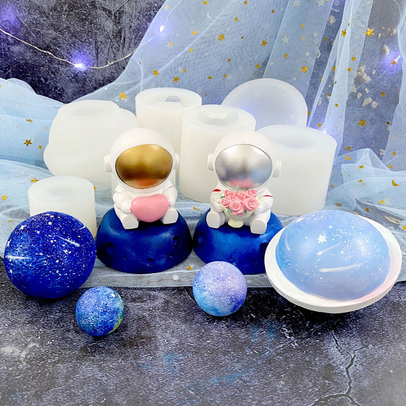 立体宇宙飛行士惑星型シリコンモールド 宇宙テーマ樹脂月球石膏アロマキャンドル置物型