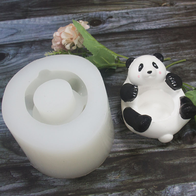 かわいいパンダ茶蝋香薫ろうそく台石膏シリコン金型チョコレート具セメント滴ゴム手作り石鹸シリコン金型