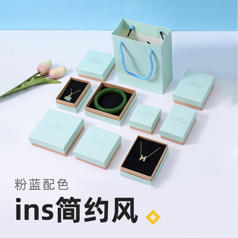 現物卸売りジュエリー収納ギフトボックス清新ブルーパウダー包装箱手提げ袋ネックレスリング口紅ギフトボックス