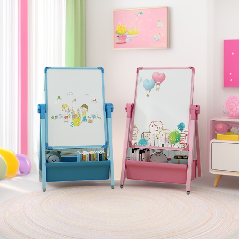 子供用両面磁気製図板、男の子と女の子用、昇降可能な家庭用黒板ブラケットタイプ学生木製製図板おもちゃ