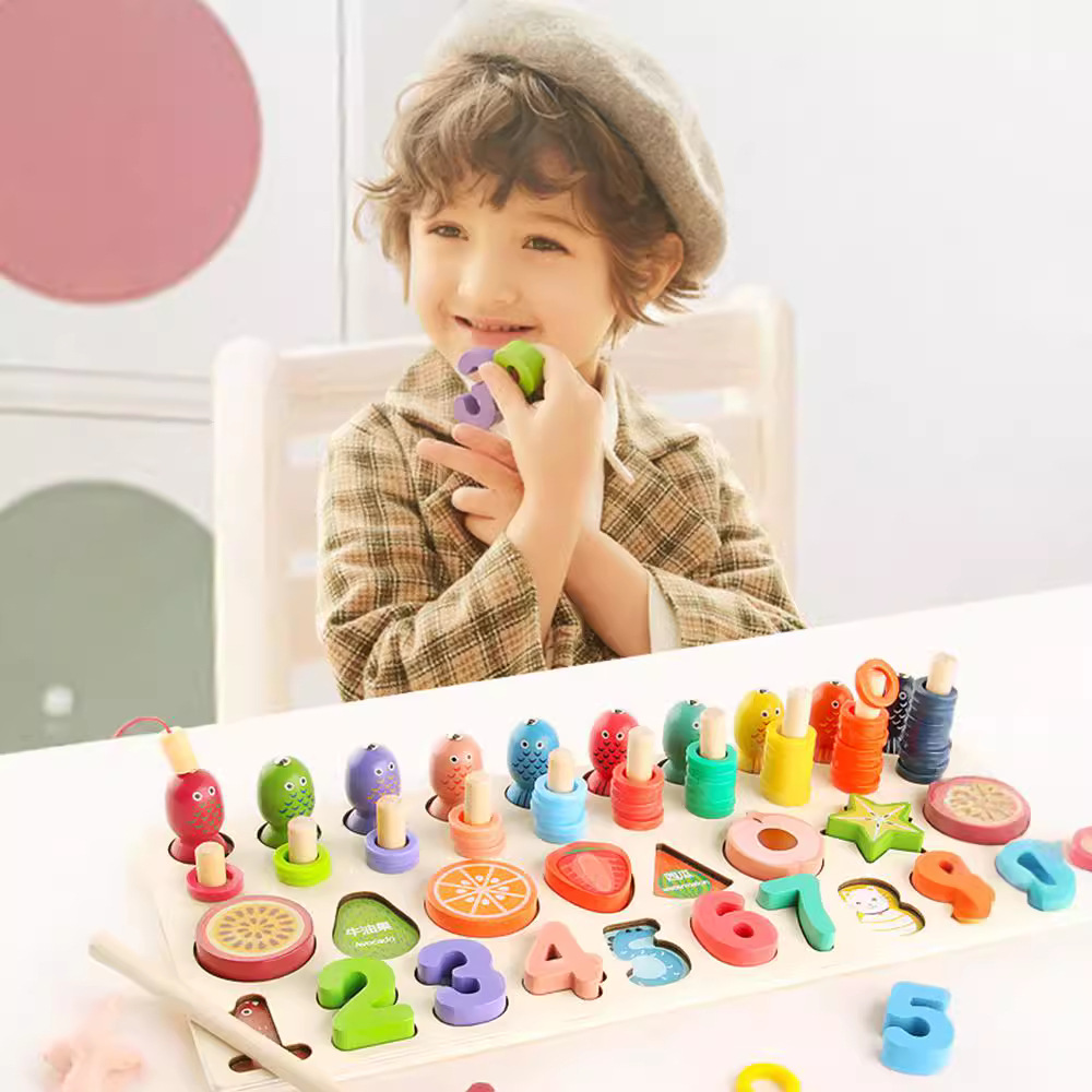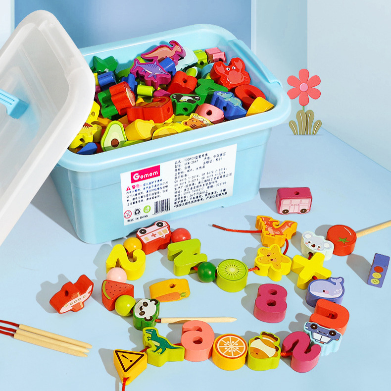 子供の積み木の木の益智はおもちゃの赤ちゃんの桶を詰めて1-2-3歳の女の子の男の子を詰めて卸売りします。