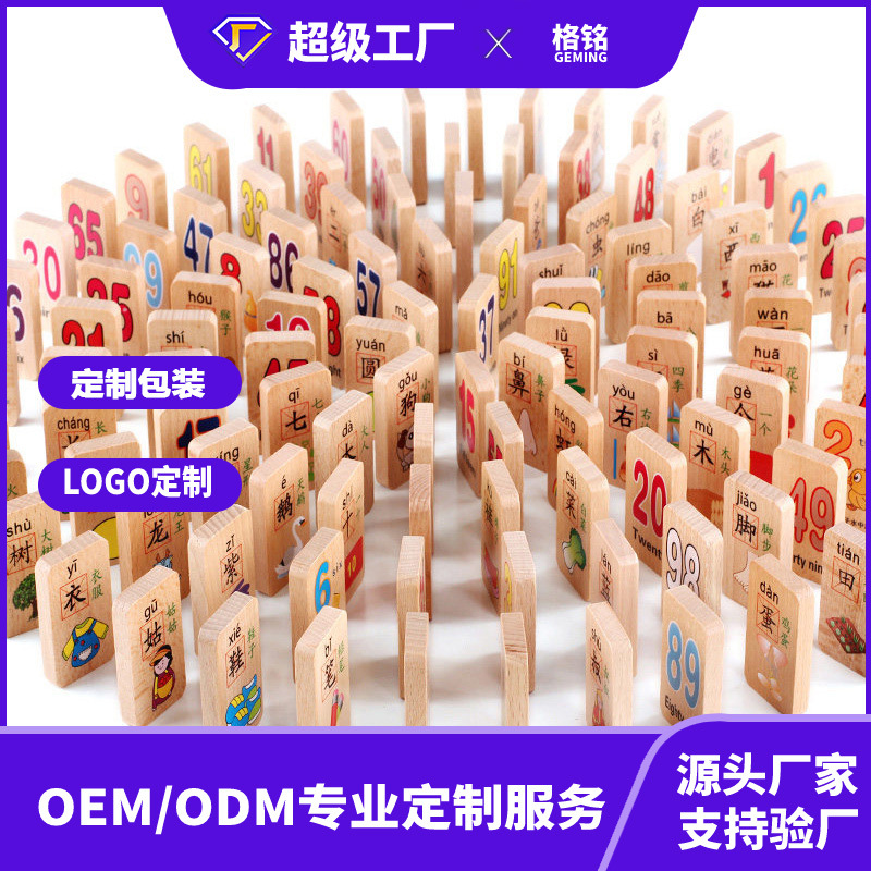 木製のドミノの積み木をカスタマイズして子供の益智のおもちゃの3-4-5-6歳の脳の100粒の男の女の子を動かします。