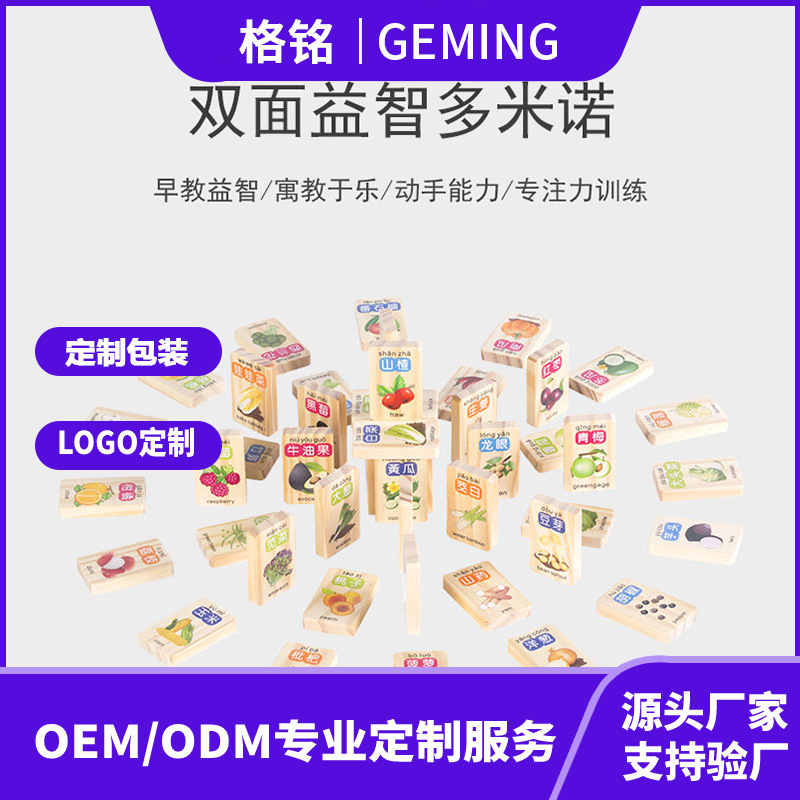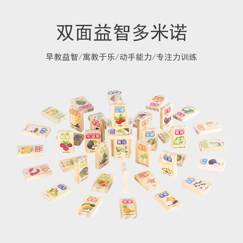 木製ドミノ牌積み木質児童益智慧玩具3-4-5-6歳動脳100粒男女児