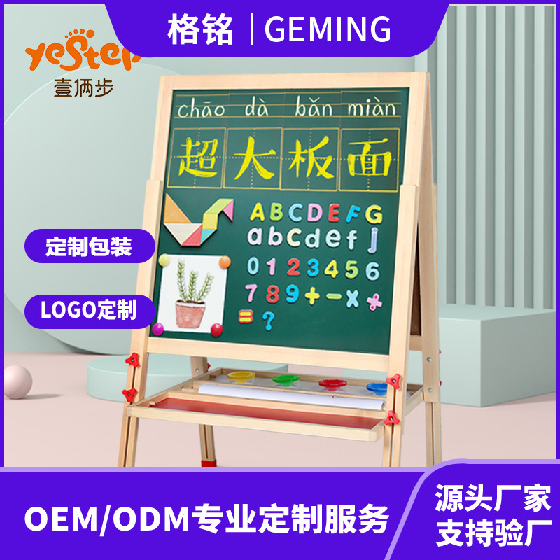 クロスボーダー壱二歩カラーボックス実木児童画板木製磁気両面昇降可能画架スタンド式小黒板
