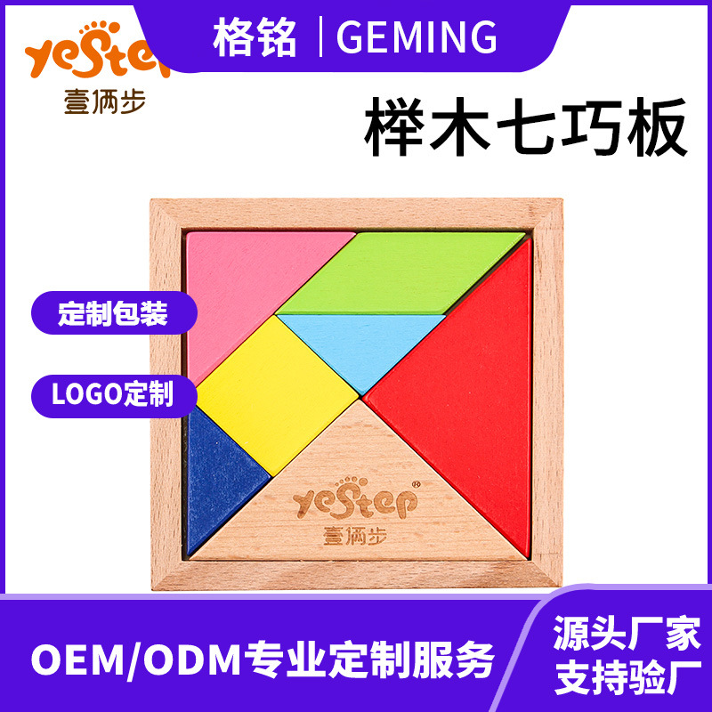 カスタム大サイズ7七巧板小学生用教具1年生下巻図形数学3益知能パズル木製