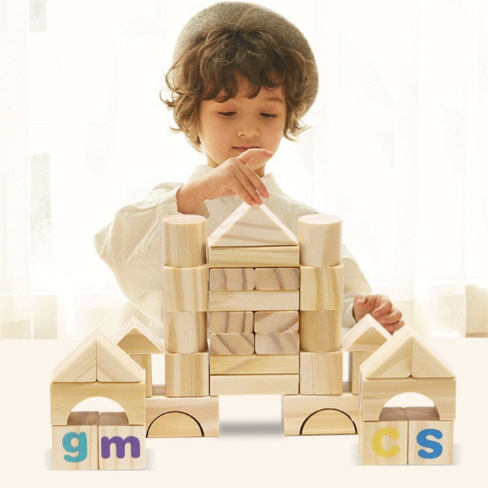 子供の知育は積み木のおもちゃをつづり合わせます。