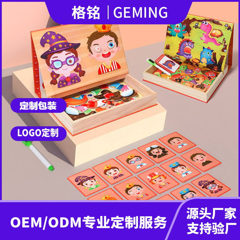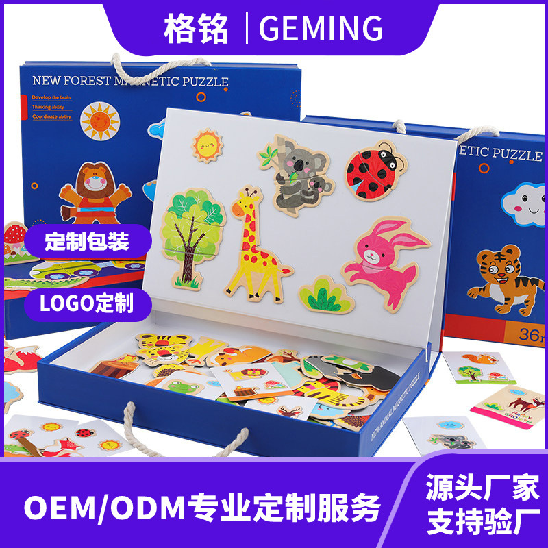 カスタム子供磁気パズル益知能開発玩具積木製3-6歳2男の子女の子幼稚園早教