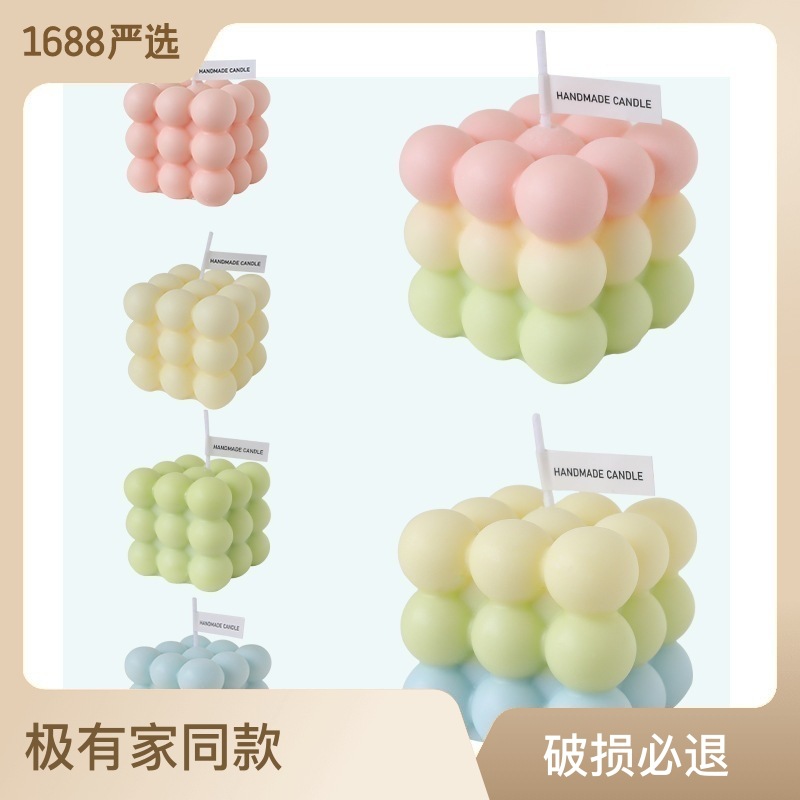 工厂批发可爱泡泡蜡烛礼物批发女生卧室ins托盘摆件魔方香薰蜡烛