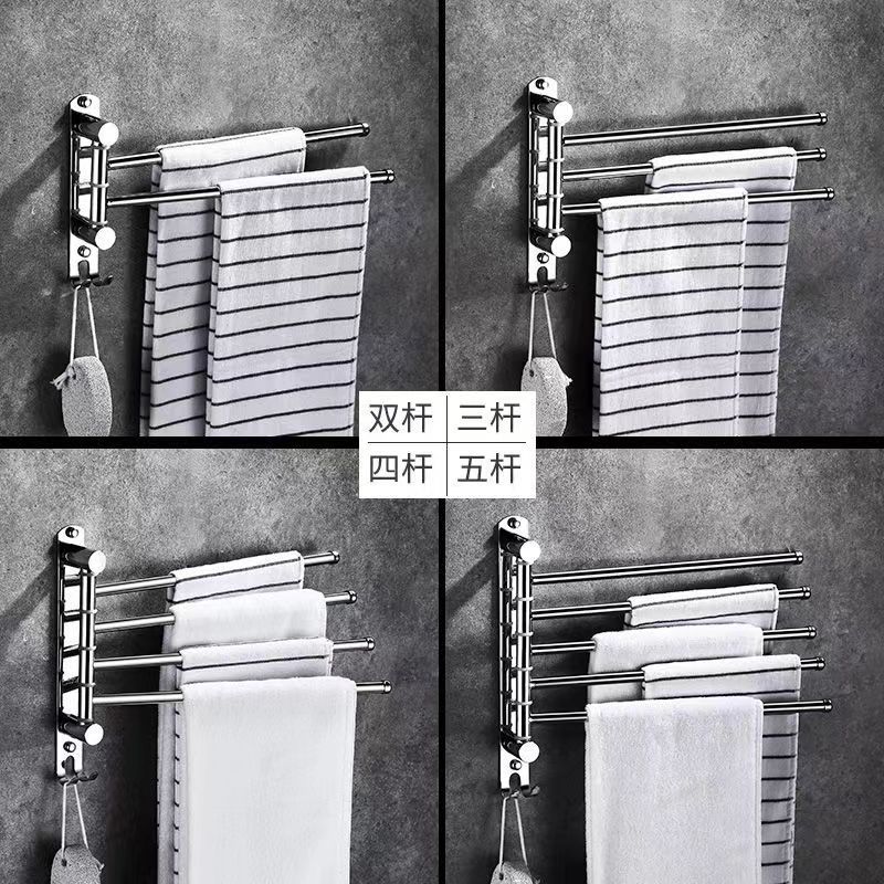 毛巾架免打孔304不锈钢挂架卫生间浴室置物架旋转折叠晾毛巾多杆