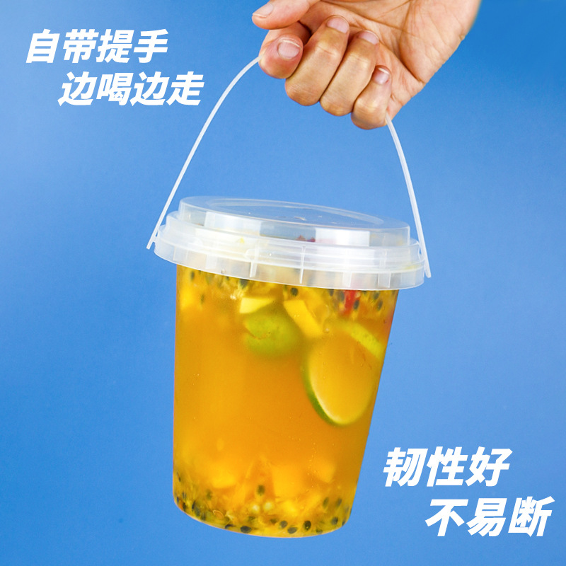 网红手提奶茶桶带盖一次性水果桶加厚1000ml大容量饮料杯批发