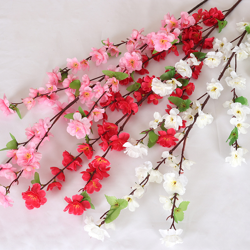 仿真长款桃花枝梅花居家婚庆酒店装饰假花人造桃花树枝绢花批发