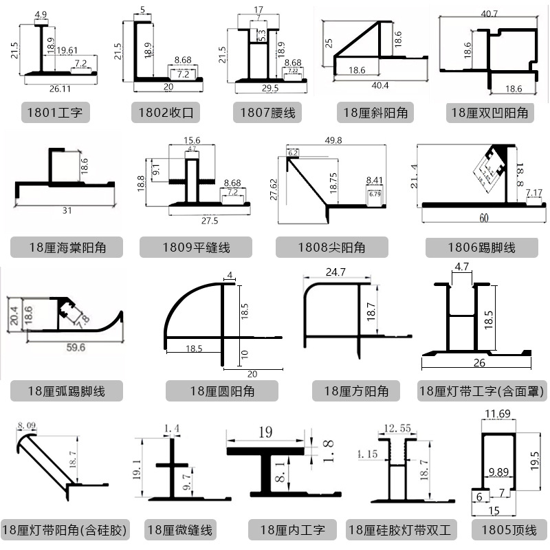 18mm护墙板收边条铝合金收口条型材18厘木饰面装饰条金属腰线工字