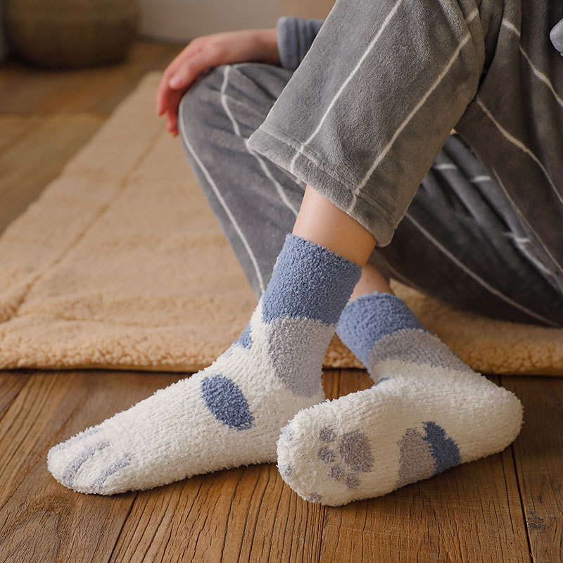 珊瑚绒袜子女可爱毛茸茸居家睡眠袜秋冬季加绒加厚中筒月子地板袜