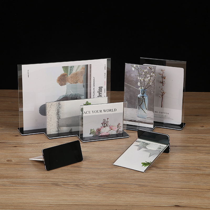 亚克力透明黑底台卡抽拉T型桌牌台签台牌餐厅展示立牌价格牌批发