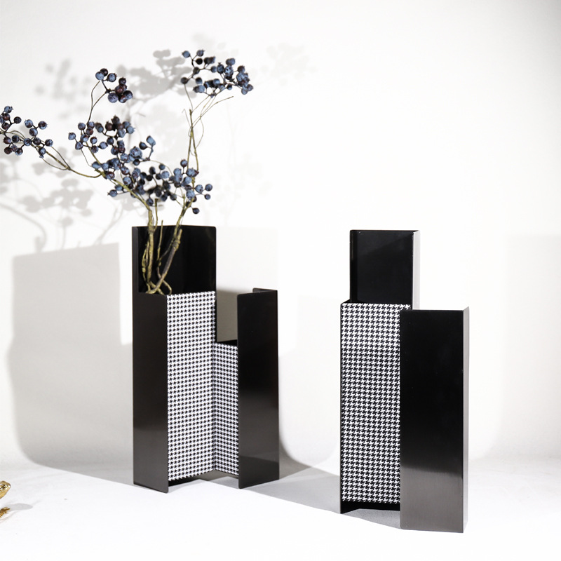 现代轻奢不锈钢皮革花瓶创意花器样板间家居客厅餐厅玄关装饰花器