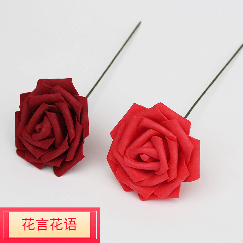 厂家批发8cmPE仿真玫瑰花泡沫花头手捧花婚庆喜糖盒配件