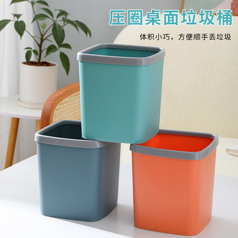 桌面垃圾桶压圈方形小号收纳桶迷你卧室床头柜桌上书桌小型小纸篓
