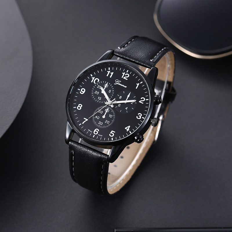外国貿易の新型ファッションgenevaジュネーブ腕時計ビジネス偽三眼男性腕時計合金ケース