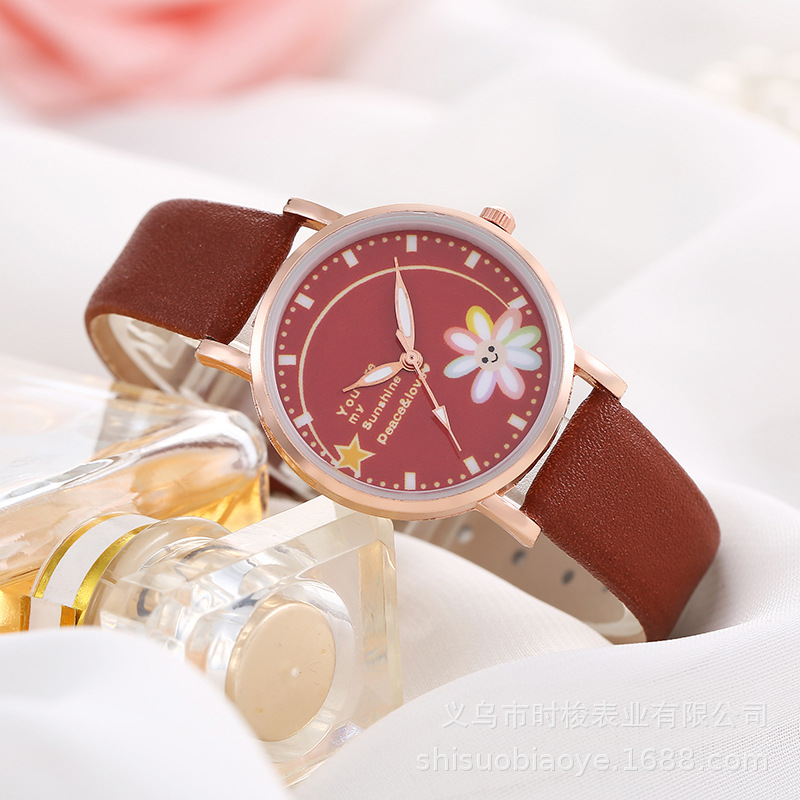 Ins少女粉シンプル気質ファッション女性時計2022新型デイジー腕時計女子学院風2腕時計
