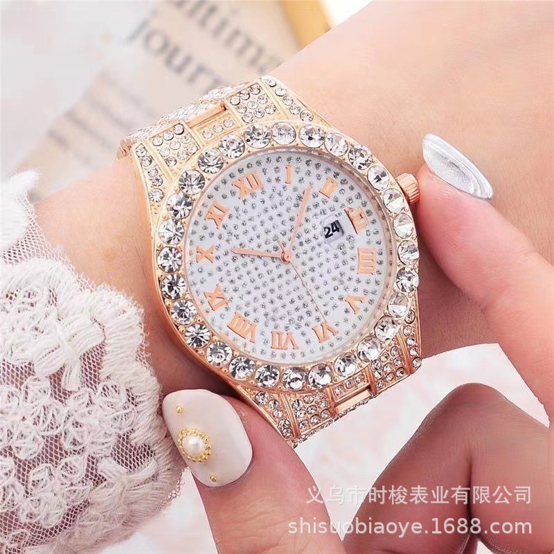 Hiphop超クールヒップホップ時計ラップ男性石英時計バンドカレンダー満天星鋼帯満ドリル腕時計卸売り