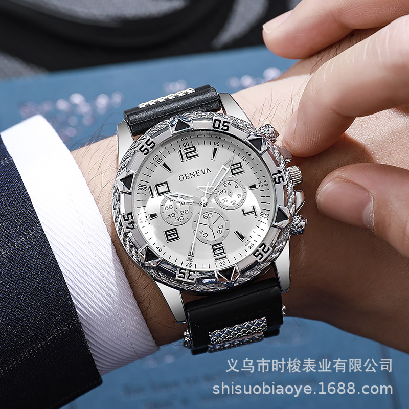 外国貿易新しい大型ダイヤル偽三つ目雰囲気ビジネスメンズシリコンストラップカジュアルクォーツ時計ファッションメンズ腕時計