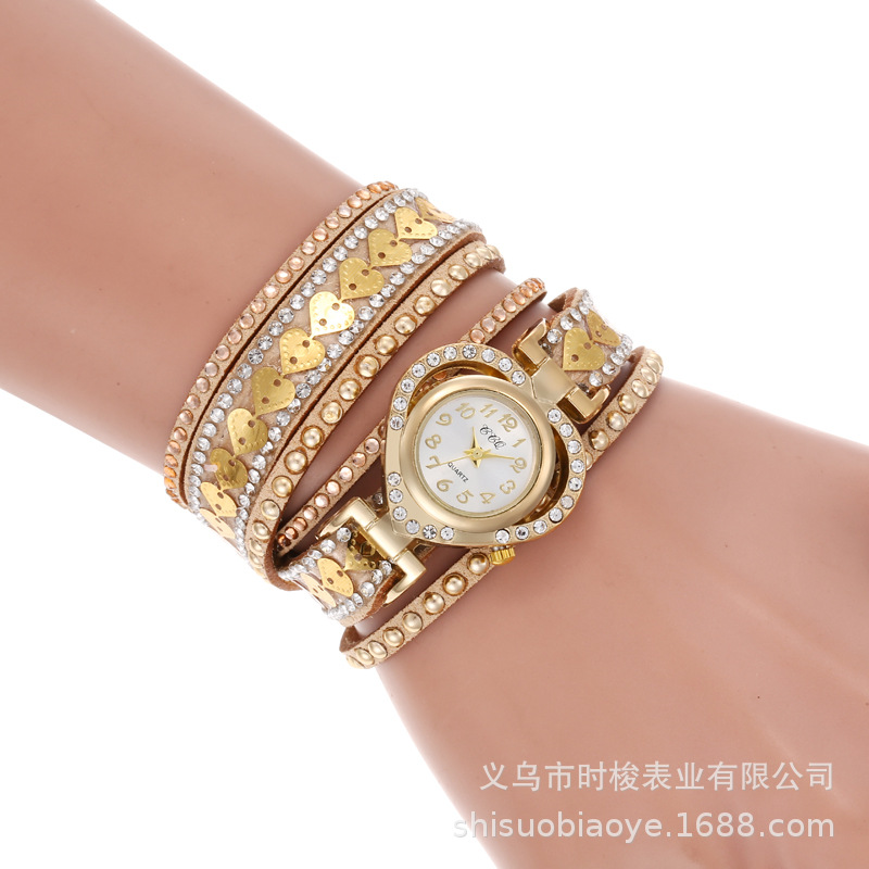 速売通の爆発的なカジュアルファッションは、ドリルの愛の文字板の手のチェーン時計の女性の長いロープの石英の腕時計を巻いています。