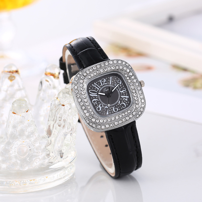 クロスボーダーの新型腕時計の四角いフルドリルの腕時計の女性watchは爆発的な軽贅沢なベルトの腕時計を生放送します。